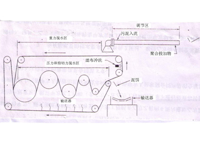 ´øÊ½Ñ¹ÂË»úÈçͼ2Ëùʾ¡£ÀûÓÃÂ˲¼£¨´ø£©µÄÕÅÁ¦ºÍѹÁ¦ÔÚÂ˲¼É϶ÔÎÛÄàÊ©¼ÓѹÁ¦Ê¹ÆäÍÑË®£¬²¢²»ÐèÒªÕæ¿Õ»ò¼ÓѹÉ豸£¬ÎÛÄàÁ÷ÈëÁ¬Ðø×ª¶¯µÄÉÏ¡¢ÏÂÁ½¿é´ø×´ÂË´øºó£¬ÂË´øµÄÕÅÁ¦ºÍÔþÕ·µÄѹÁ¦¼°¼ôÇÐÁ¦×÷ÓÃÓÚ¼ÐÔÚÁ½¿éÂÄ´øÖ®¼äµÄÎÛÄàÉÏÃæ½øÐÐÍÑË®£¬ÎÛÄàʵ¼ÊÉϾ­¹ý¶¯Á¦ÍÑË®¡¢Ñ¹Á¦ÍÑË®ºÍ¼ôÇÐÍÑË®Èý¸ö¹ý³Ì£¬ÍÑË®Äà±ýÓɹΰå°þÀ룬°þÀëÁËÄà±ýµÄÂË´øÓÃÅçÉäË®³åÏ´£¬·ÀÖ¹ÂË´ø¿×¶ÂÈû¡£¸Ã»ú¾ßÓеÍËÙÔËÐУ¬ÎÞÔëÉù£¬´¦ÀíÁ¿½Ï´óµÈÌØµã£¬ÊÇĿǰ¹úÄÚʹÓý϶à»úÐÍ£¬µ«Ëü´æÔÚ×ÅÂË´ø»á¶ÂÈû£¬±ØÐè´óÁ¿³åÏ´Ë®£¬ÎÛÄàÍÑË®³¨¿ª½øÐУ¬ÏÖ³¡»·¾³²î¡¢³ôζ´ó¡¢ÊªÆø´ó£¬Ôì³É¶Ô»·¾³¶þ´ÎÎÛȾµÈ²»×㣨ÇÒÔËÐÐÖÐÒ×·¢ÉúÂË´ø×߯«£¬²úÉúÎÛÄàË®ºáÁ÷£¬Ê¹»·¾³¸ü¶ñÁÓ£©¡£¸Ã»úÔËÐÐÖÐÐõÄý¼ÁÏûºÄÁ¿Ïà¶Ô½Ï´ó£¬ÔËÐгɱ¾Éý¸ß£¬É豸Ìå»ýÅӴ󣬳§·¿ºÍ»ù½¨·ÑÓøߵÈÖî¶àÎÊÌâ¡£